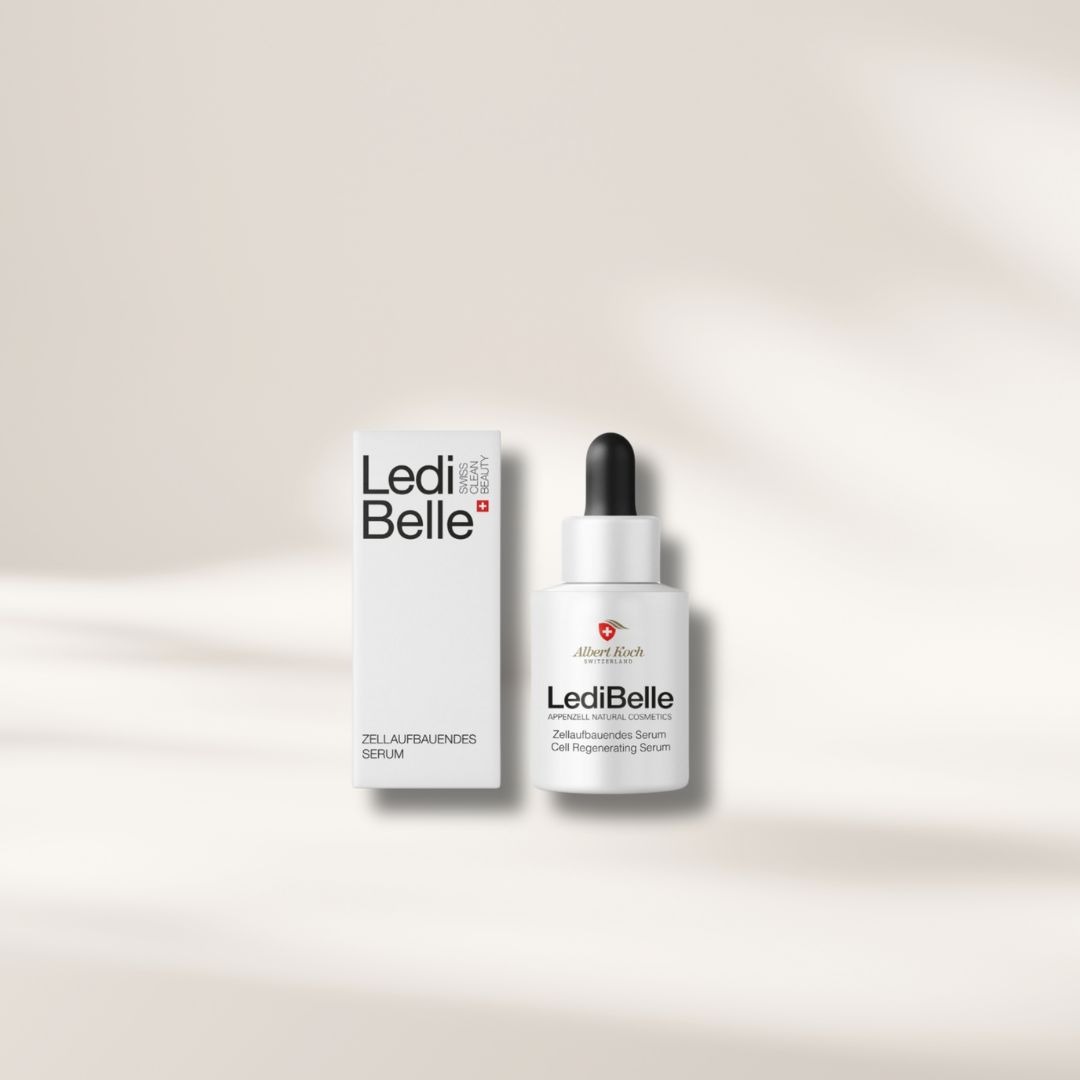 Das zellaufbauende Serum von LediBelle ist ein hochwirksamer Anti-Aging-Cocktail für empfindliche Haut. Mit Ziegenmolke, Jakobsquellwasser und Edelweiß-Stammzellen unterstützt es die Zellregeneration, stärkt die Hautbarriere und schenkt jugendliche Spannkraft. Hyaluronsäure, Q10, Vitamin E und wertvolle Pflanzenöle sorgen für intensive Feuchtigkeit, Schutz vor freien Radikalen und einen natürlichen Glow. Hypoallergen, frei von Parabenen, Silikonen und Tierversuchen – entwickelt und hergestellt in der Schweiz.